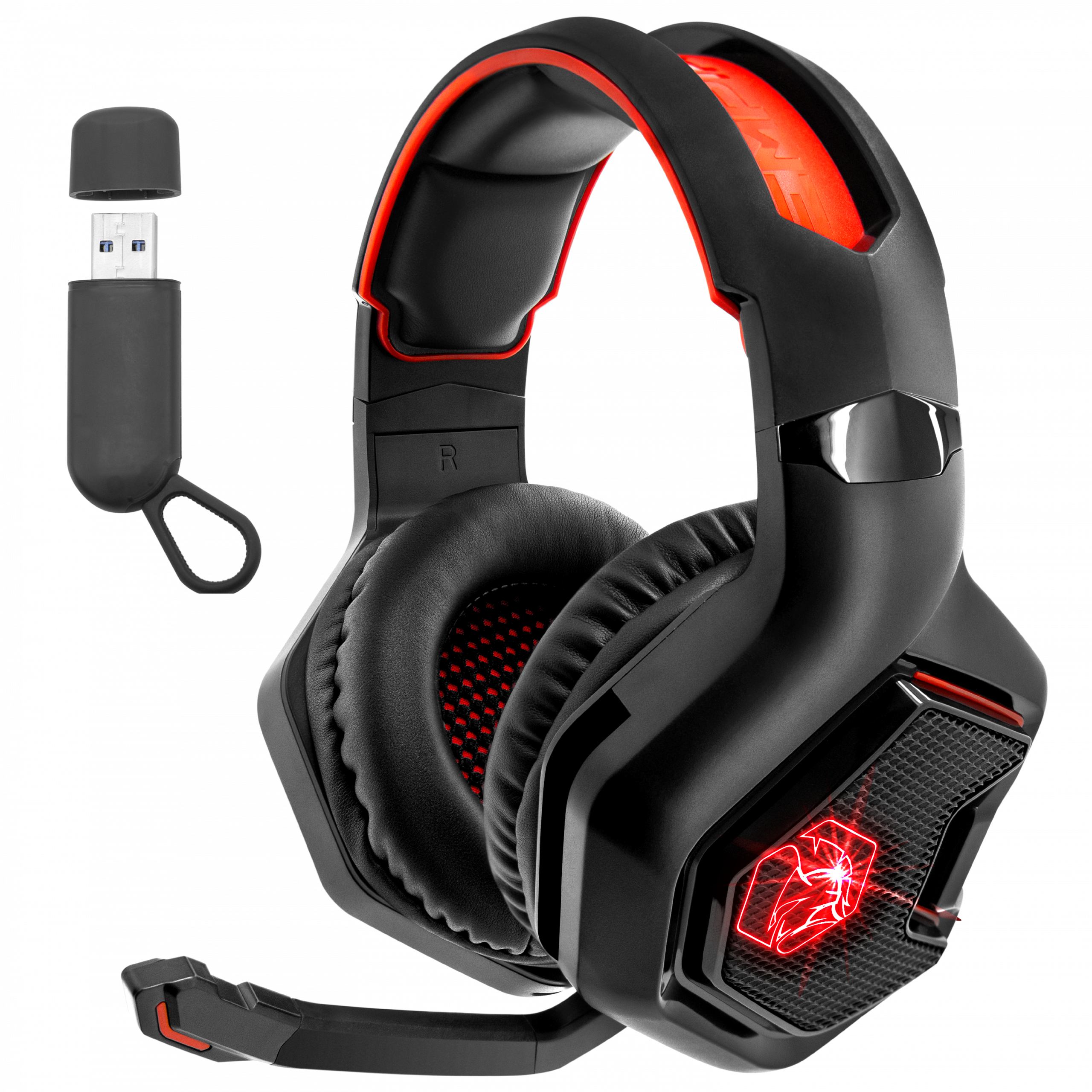 - SONIDO INMERSIVO: altavoces de 50 mm con retroiluminación roja que producen un campo sonoro envolvente de 360 grados.